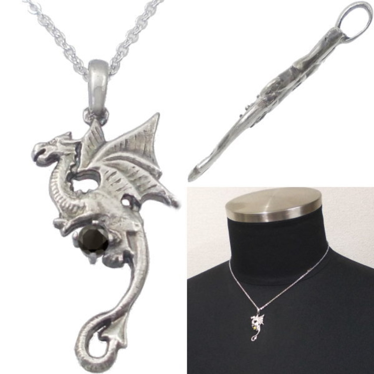 ブラックCZ ドラゴン シルバーペンダントネックレス△キュービックジルコニア使用*BP-1042