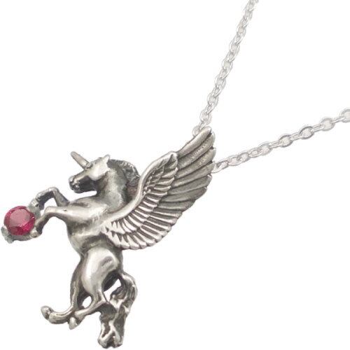 (7月)ルビー 有翼の ユニコーン シルバーペンダントネックレス 誕生石*BP-1029