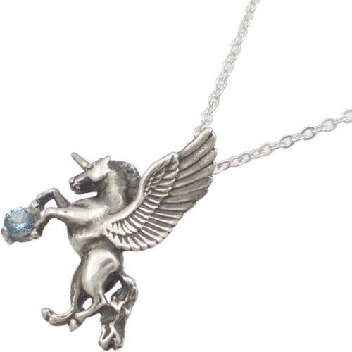 燻しの深い仕上げでアンティークな優雅で落ち着いたデザインに誕生石をセッティング。有翼のユニコーンはアリコーンやユニサスとも呼ばれ空想の生き物の中でも珍しい。バースデーストーンの他にもブラックとイエロージルコニアも用意好みのカラーでも選べる14色。