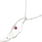 (7月)ルビー ラージ オープンフェザー シルバーペンダントネックレス 誕生石*BP-1027