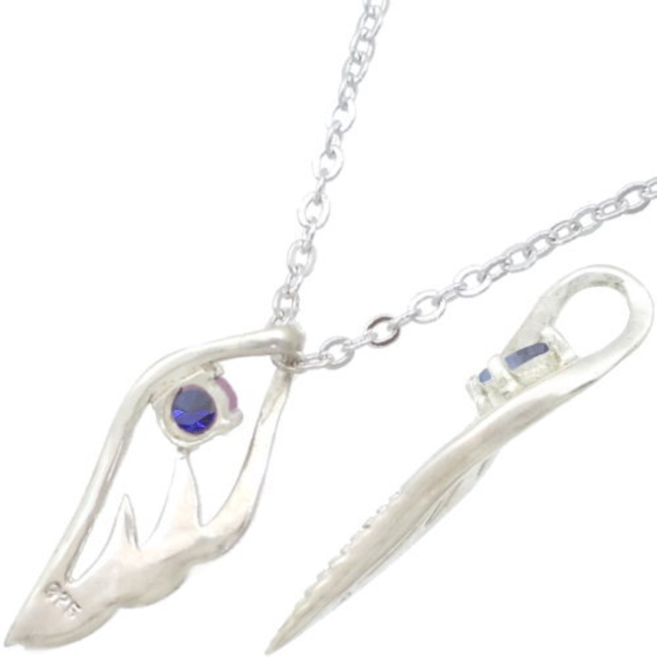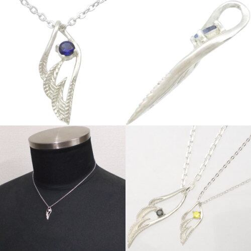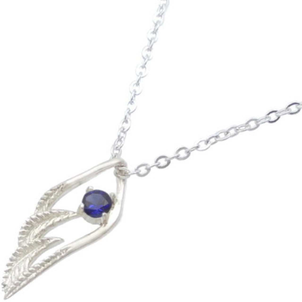 (9月)サファイア スモール オープンフェザー シルバー ペンダントネックレス 誕生石*BP-1028