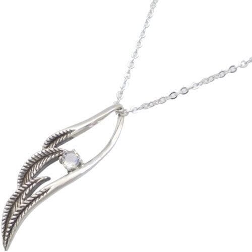 (6月)ブルームーンストーン ブラック ラージ オープンフェザー シルバーペンダントネックレス 誕生石*BP-1031