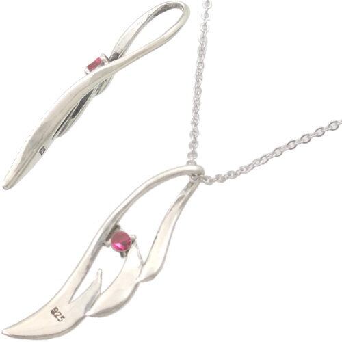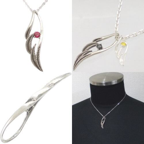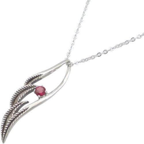 (7月)ルビー ブラック ラージ オープンフェザー シルバーペンダントネックレス 誕生石*BP-1031