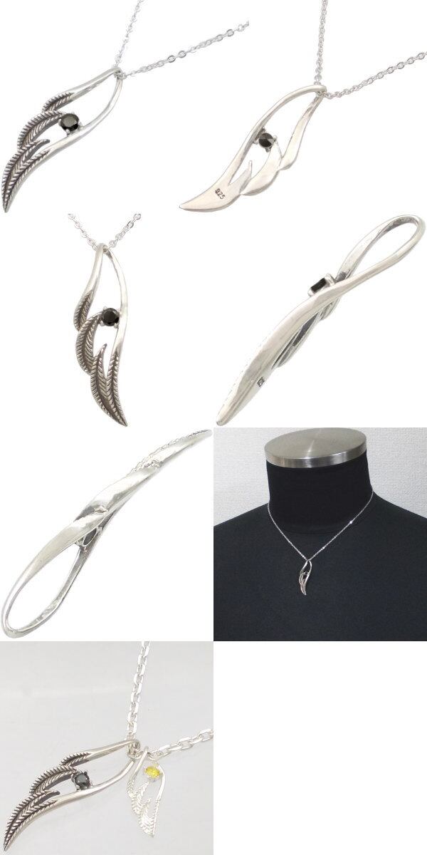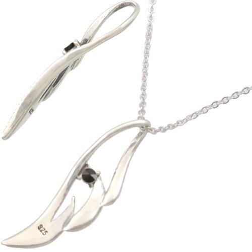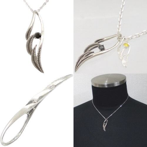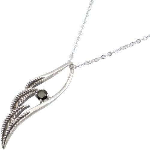 ブラックCZ ブラック ラージ オープンフェザー シルバーペンダントネックレス△キュービックジルコニア使用*BP-1031