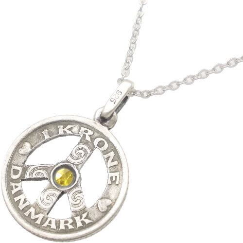 北欧の高福祉で国民の幸福感の高さでも知られるデンマーク、その「幸せを呼ぶコイン」と呼ばれるデンマーククローネをシルバーに仕上げたバースデーペンダント。