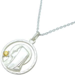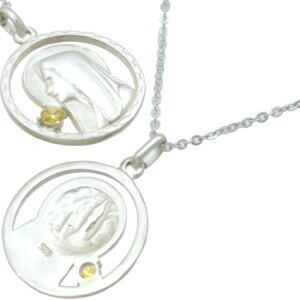 オーラをまとった聖母マリアをコインリングでデザインしたペンダント。誕生石が選べるのはモチロン、スッキリとした印象のホワイト仕上げと立体感のある陰影が魅力の燻し仕上げからも選べ仕上げ違いでのペアなどにもオススメのバリェーション。