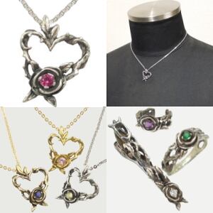 ★薔薇とハートを美しくリース状に組み合わせたデザインが目を引くペンダントトップ。