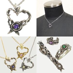 ★薔薇とハートを美しくリース状に組み合わせたデザインが目を引くペンダントトップ。