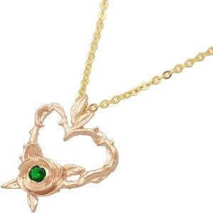 (5月)エメラルドグラス ハートピンクローズルースブラスペンダントネックレス 誕生石*BP-1019