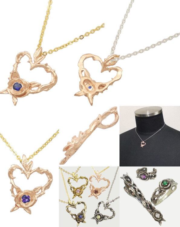 ★薔薇とハートを美しくリース状に組み合わせたデザインが目を引くペンダントトップ。