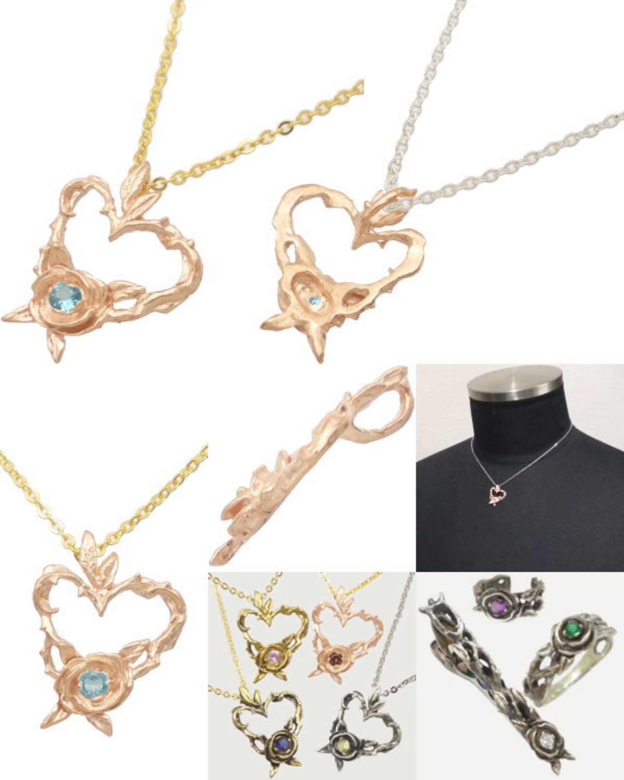 ★薔薇とハートを美しくリース状に組み合わせたデザインが目を引くペンダントトップ。
