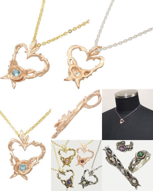 (11月)ブルートパーズ ハートピンクローズルースブラスペンダントネックレス 誕生石*BP-1019