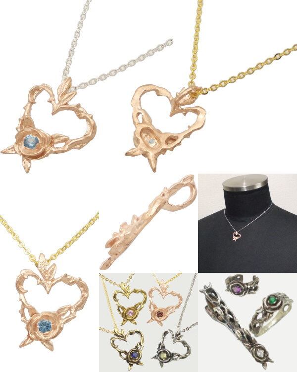 ★薔薇とハートを美しくリース状に組み合わせたデザインが目を引くペンダントトップ。