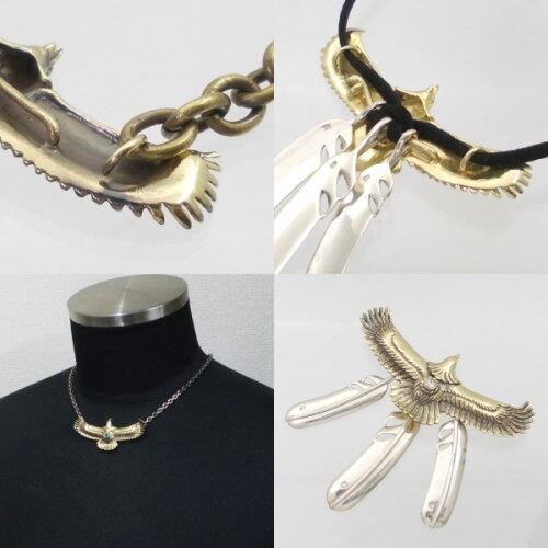 ネイティブの定番人気イーグルの背にツイステッドワイヤーで飾ったバースデーストーンをセッテイング。バリエーションも仕上げ違いの他にシルバーとブラスの素材違いも用意、多彩なバリエーションで硬派にもカジュアルにも選べるのも魅力。
