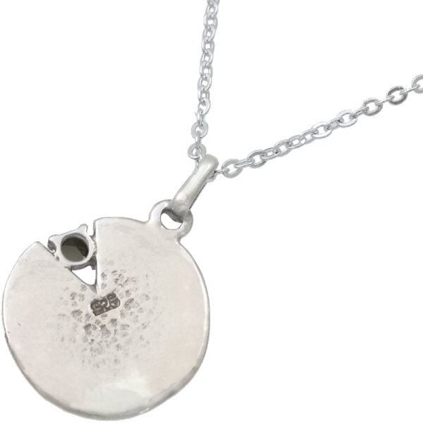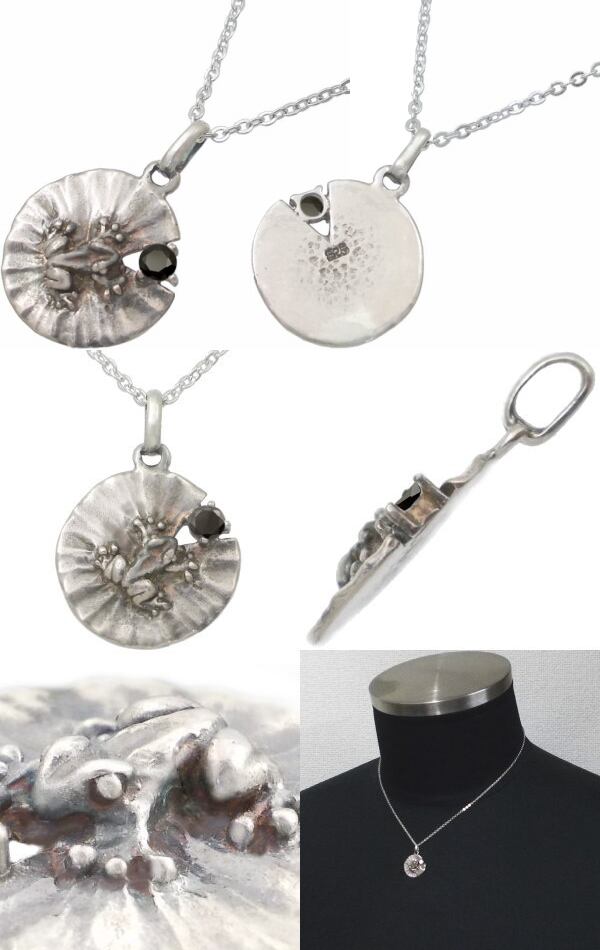 ★睡蓮の葉に張り付くカエルとその切れ目に誕生石を含むストーンをセッティングしたプチネックレス。