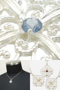 気品のあるスクロールに囲まれたクロスモチーフの誕生石をあしらった普段使いにもオススメのペンダント。12種の誕生石の他に個性的なイエロージルコニアもご用意しいてます。