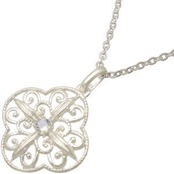 気品のあるスクロールに囲まれたクロスモチーフの誕生石をあしらった普段使いにもオススメのペンダント。12種の誕生石の他に個性的なイエロージルコニアもご用意しいてます。