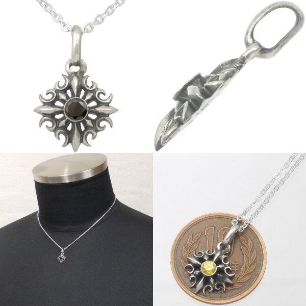 定番のモチーフを定番のゴシック調にアレンジしたクロスモチーフにバースデーストーンをセッティングしたネックレス、バースデーストーンの他にもブラックとイエロージルコニアも用意好みのカラーでも選べる14色