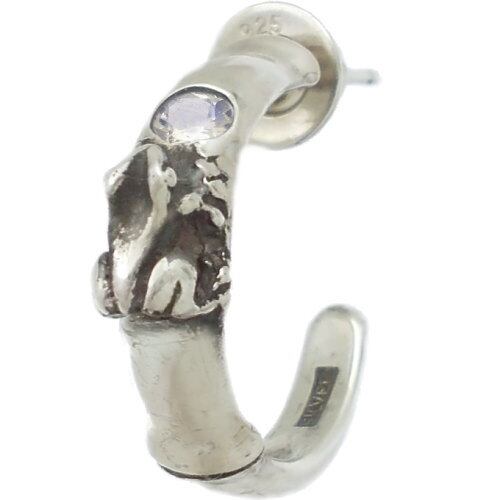 必死にしがみつく仕草がキュートなフープタイプのピアス。無事帰る、福カエルなどの縁起が良いと言われる蛙モチーフと誕生石を含むストーンとの幸運のコンビネーション。