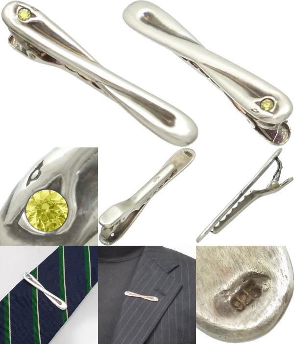 美しい曲線フォルムと燻し仕上げの陰影による蛇と8の字の立体感、シルバーだからこその素材感はやはり「色だけシルバー」のタイピンとは存在感が段違い。しかも左手には大きな牙で誕生石を咥え込む蛇、脱皮を繰り返す蛇は無限、永遠の象徴としても知られベースのループデザインと見事にシンクロ。また蛇は神の使いとして金運や仕事運などをアップさせると言われプレゼントとしてもオススメ。