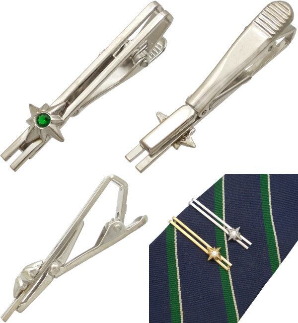 (5月)エメラルドグラス サン(太陽神)ロジュウム シルバー ブラスネクタイピン 誕生石*BK-1025