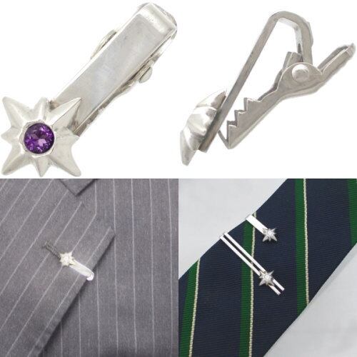 (2月)アメジスト サン(太陽神)ロジュウム シルバー ブラス ショートネクタイピン 誕生石*BK-1038