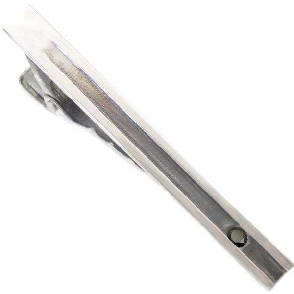 シルバーの素材を生かした光沢と燻しのグラデーションの効いたコントラストが魅力のシンプルなラインデザインのネクタイピン。裏面は艶消し燻し仕上げで落ち着いた風合いに。