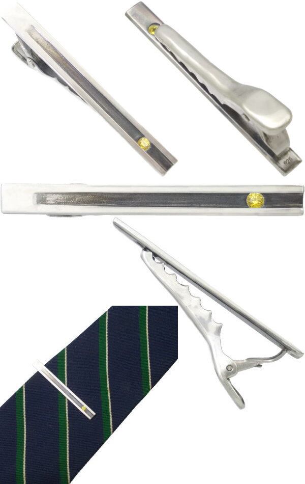 イエローCZ クールライン シルバー ネクタイピン△キュービックジルコニア使用*BN-1002