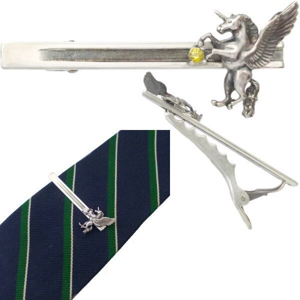 有翼のユニコーンはアリコーンやユニサスとも呼ばれ空想の生き物の中でも珍しいデザインのフルシルバーネクタイピン。裏面はシルバー素材を活かした艶消し燻し仕上げで落ち着いた風合いに。
