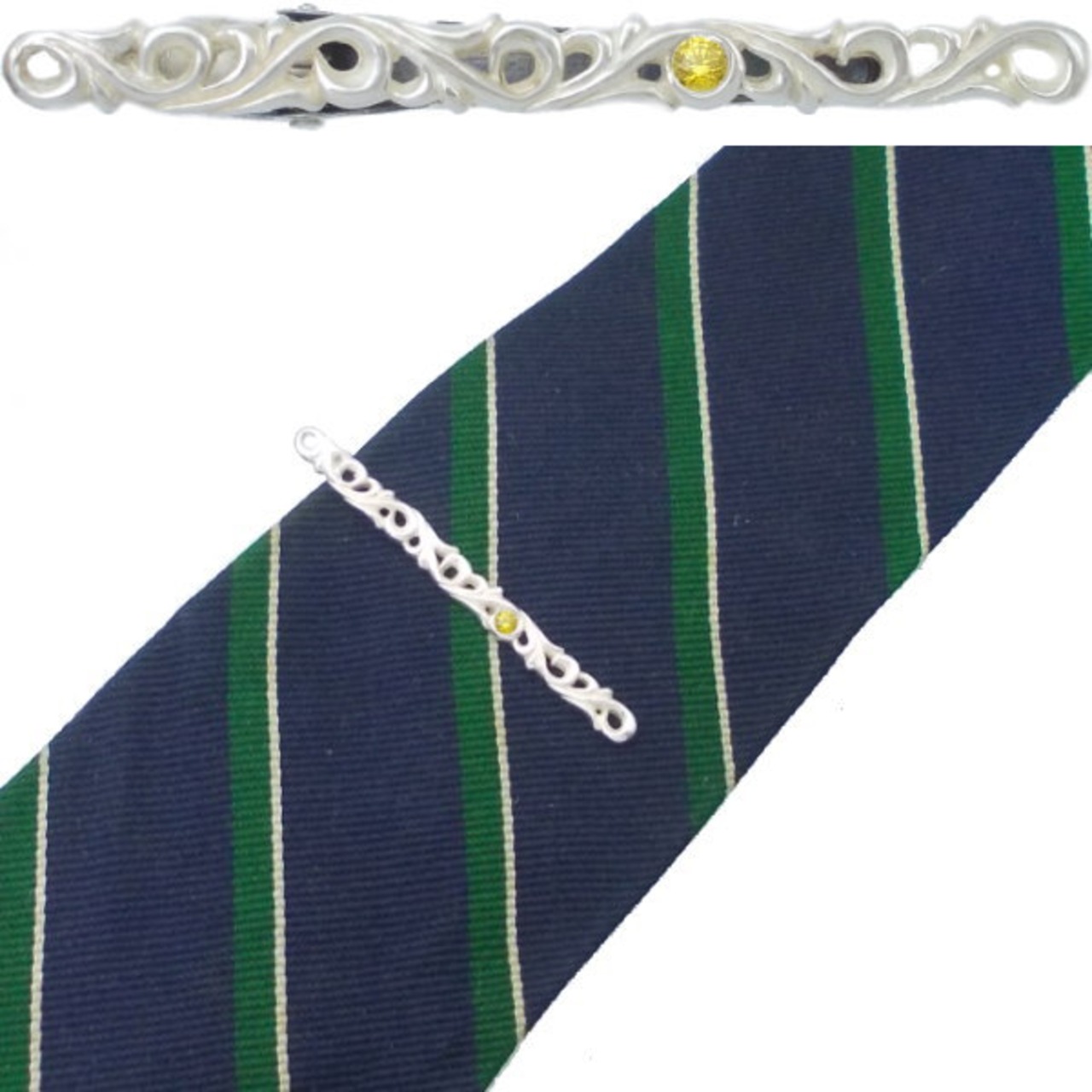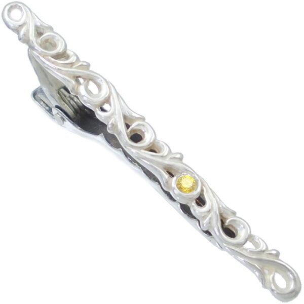 イエローC Z ホワイト アラベスク シルバー ネクタイピン△キュービックジルコニア使用*BT-001