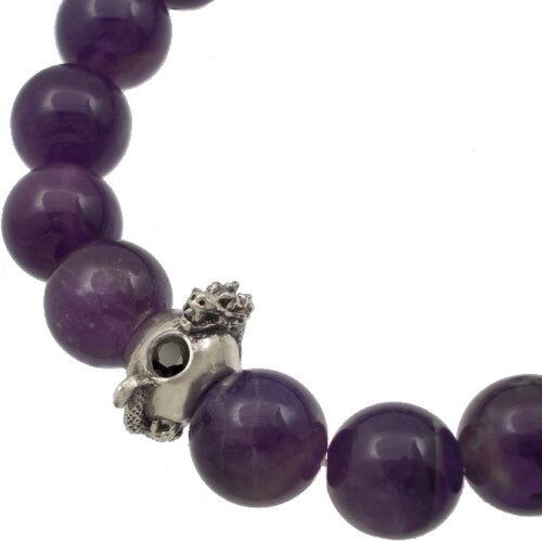 ブラックジルコニア ドラゴンボール シルバー デープアメジスト ブレスレット 誕生石*BB-1004