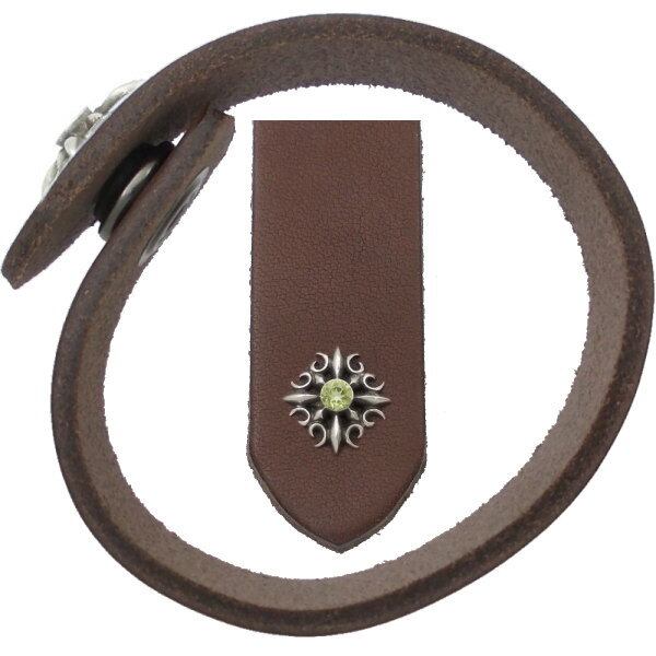 (8月)ペリドット ゴシック クロス ブラウンレザーブレスレット 誕生石*BB-1012