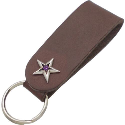 ★存在感たっぷりのスターモチーフと誕生石のレザーキーホルダー。