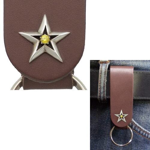 ★存在感たっぷりのスターモチーフと誕生石のレザーキーホルダー。