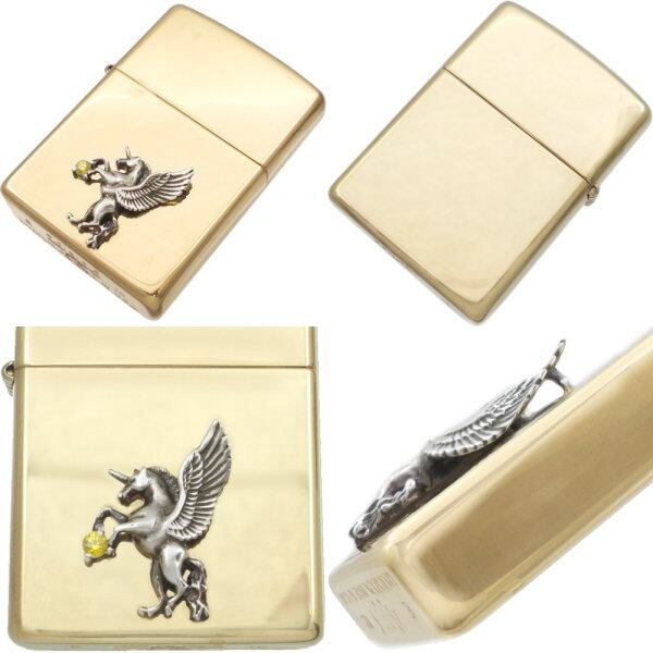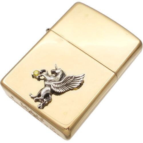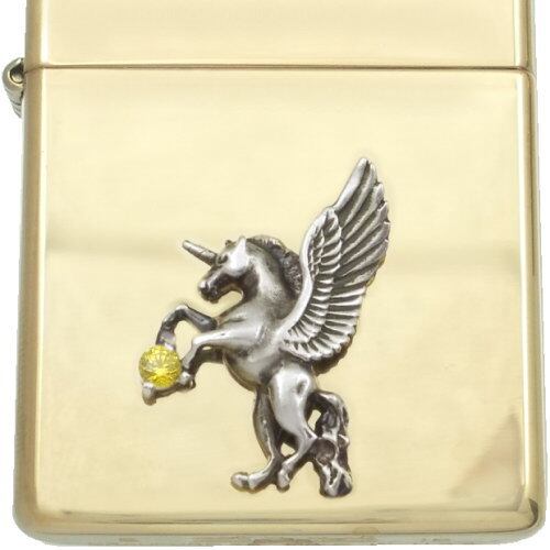 ★伝説の良いとこ取り!シルバーのユニコーンとペガサスが融合した誕生石のブラスボディジッポ。
