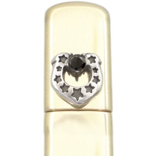 ブラックCZ スター ホースシュー ブラスジッポ△キュービックジルコニア使用*BZ-1011
