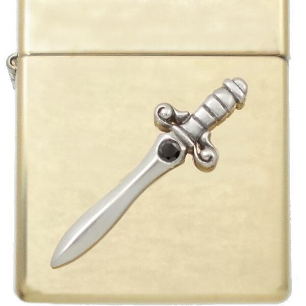 ★美しいシルバーの輝きを堪能できる剣と身に着ける人を守る誕生石のブラスボディジッポ。