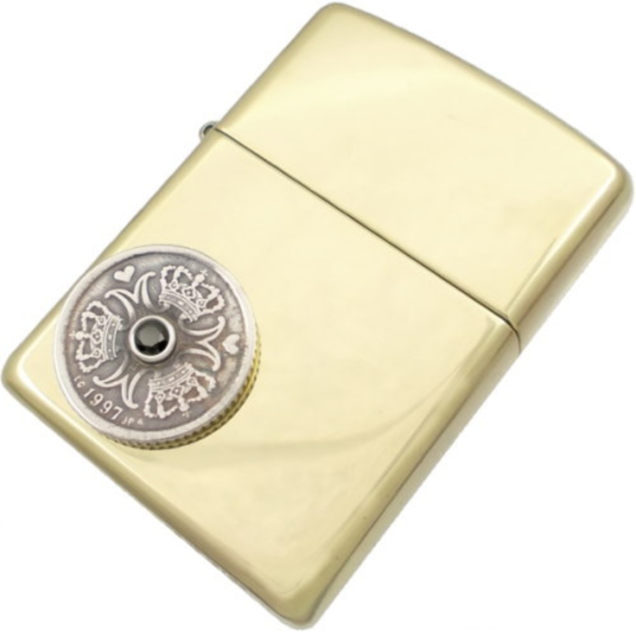 ブラックCZ 1クローネ コイン ブラスジッポ△キュービックジルコニア使用*BZ-462