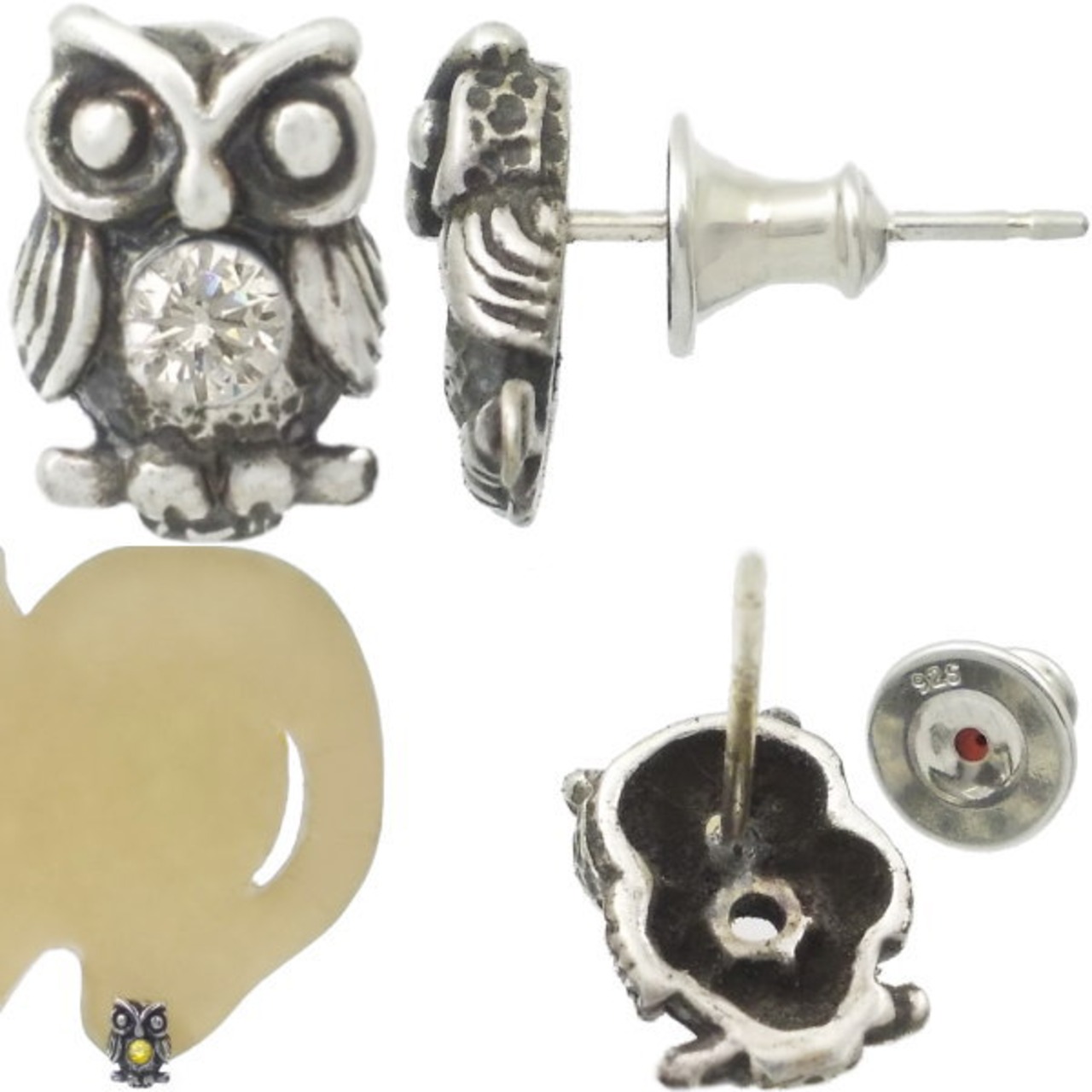 (4月)ジルコニア ふくろう シルバー ピアス 誕生石*BE-1029