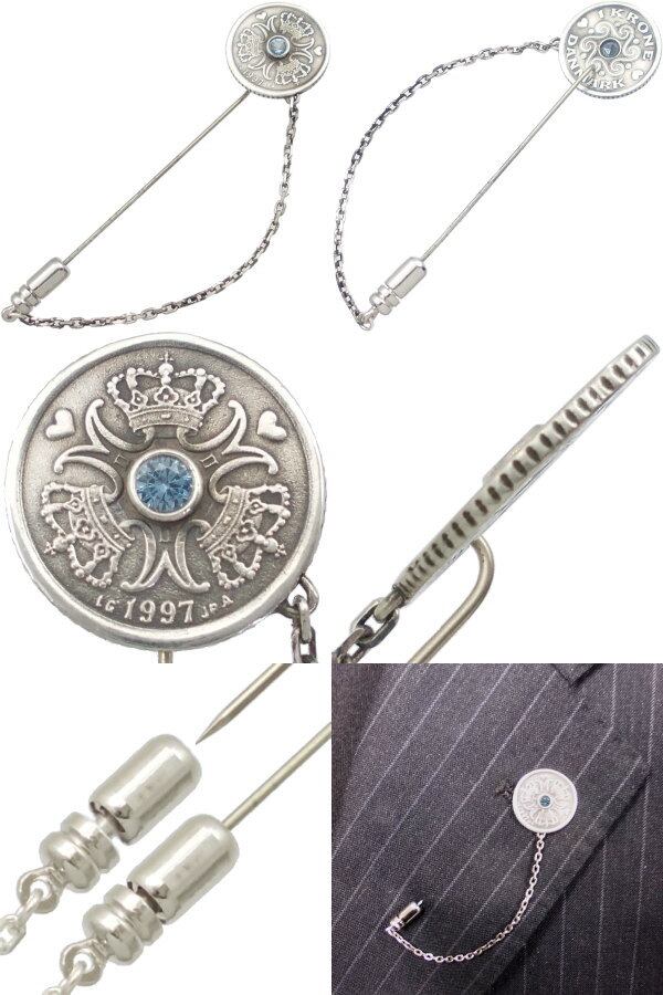 北欧の高福祉で国民の幸福感の高さでも知られるデンマーク、その「幸せを呼ぶコイン」と呼ばれるデンマーククローネをシルバーに仕上げたストーンラペルピン。