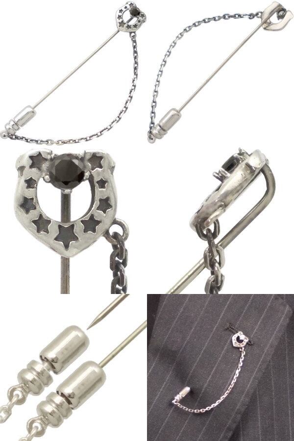 ★幸運を呼び込む馬蹄モチーフと誕生石のカットチェーン付ラペルピン。