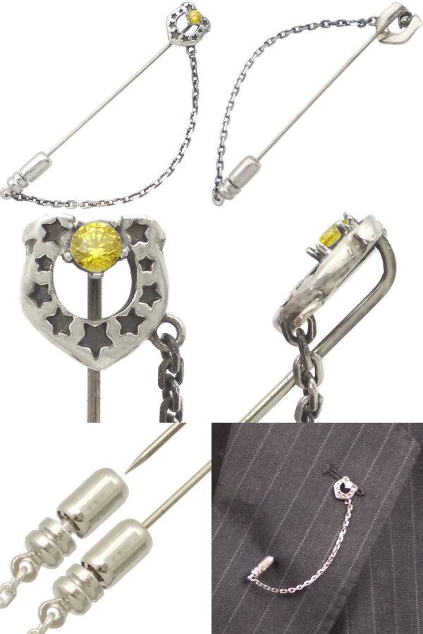 ★幸運を呼び込む馬蹄モチーフと誕生石のカットチェーン付ラペルピン。