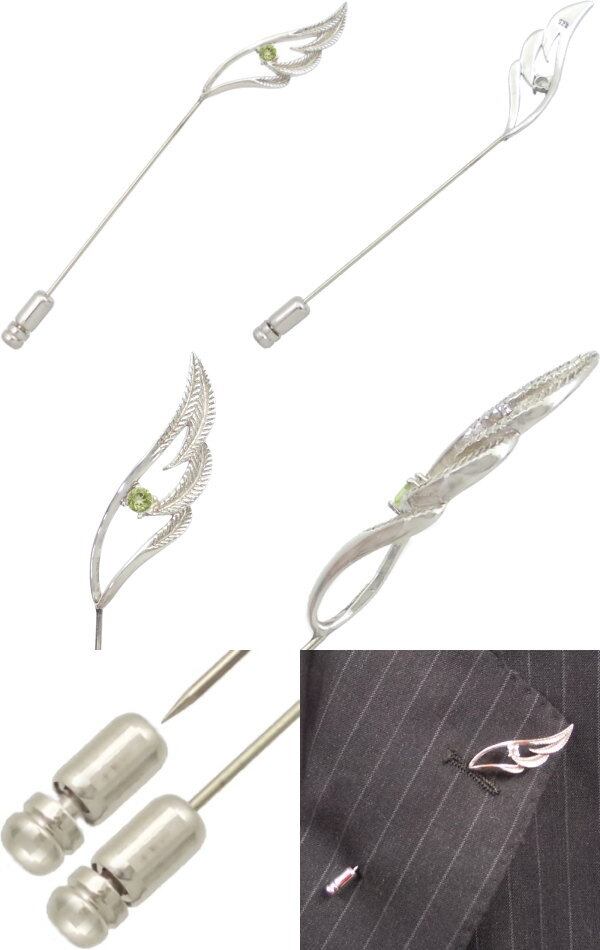 ★エレガントなデザインが目を引くオープンフェザーデザインのラペルピン。。