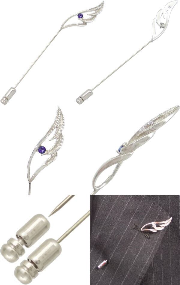★エレガントなデザインが目を引くオープンフェザーデザインのラペルピン。。