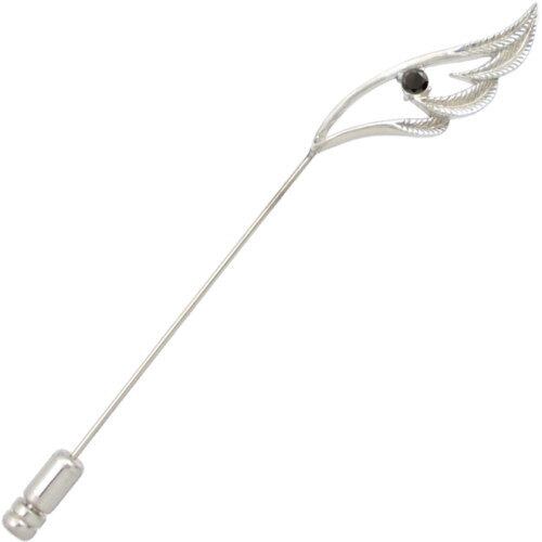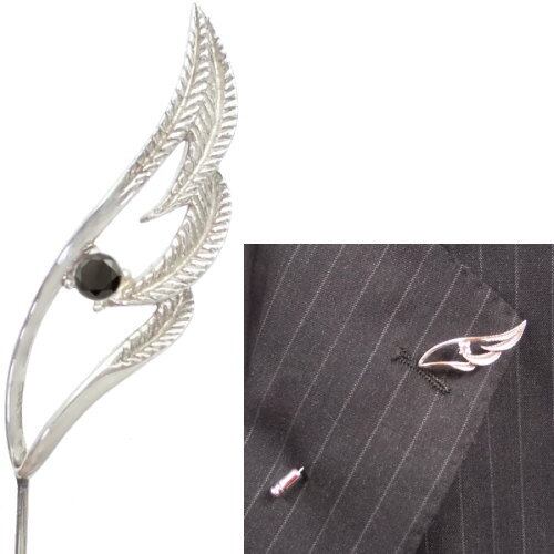 ブラックCZ ラージ オープン フェザー シルバー ラペルピン△キュービックジルコニア使用*BK-1045