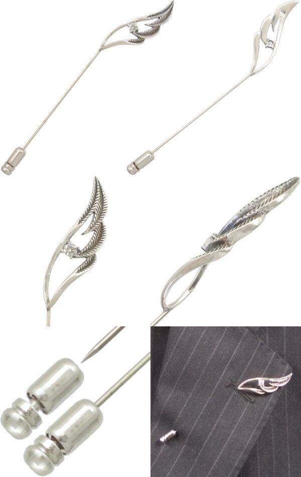 ★エレガントなデザインが目を引くオープンフェザーデザインのラペルピン。。