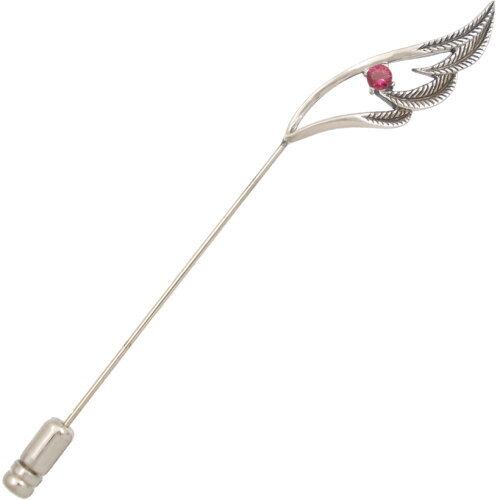 (7月)ルビー ブラック ラージ オープン フェザー シルバー ラペルピン 誕生石*BK-1046