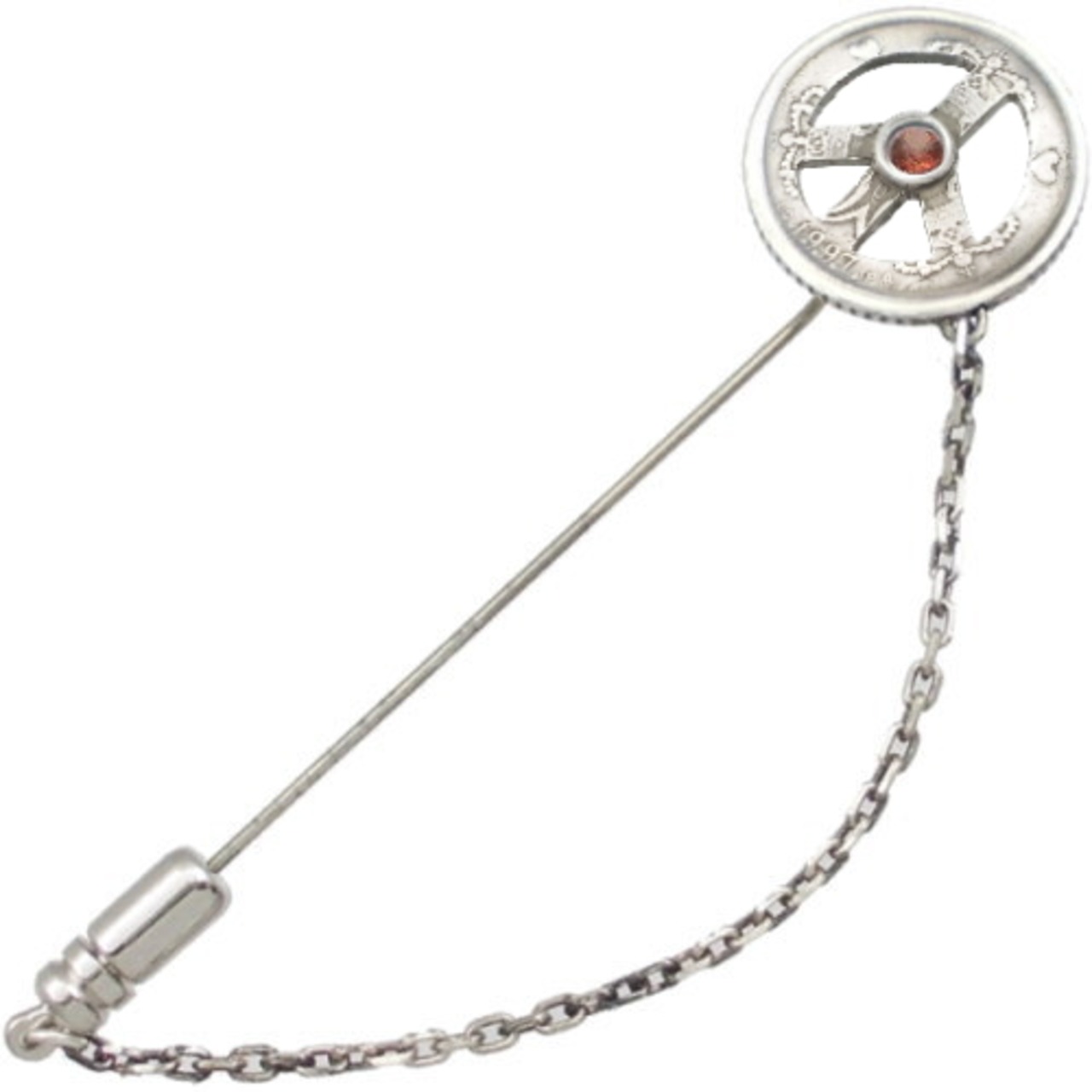 (1月)ガーネット クローネ ピース コイン チェーン シルバー ラペルピン 誕生石*BK-1056