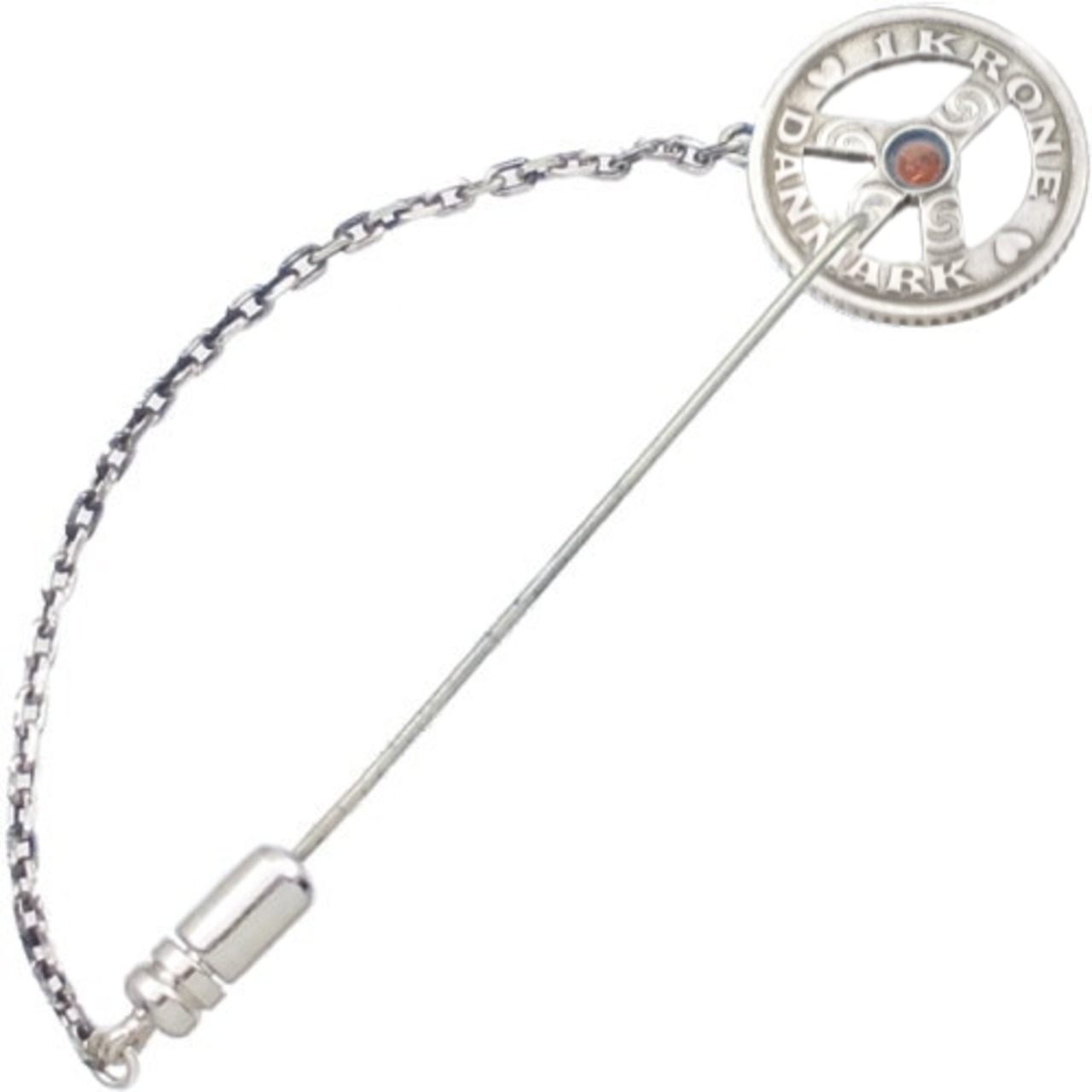 北欧の高福祉で国民の幸福感の高さでも知られるデンマーク、その「幸せを呼ぶコイン」と呼ばれるデンマーククローネをシルバーに仕上げたストーンラペルピン。