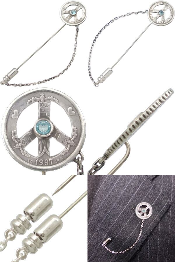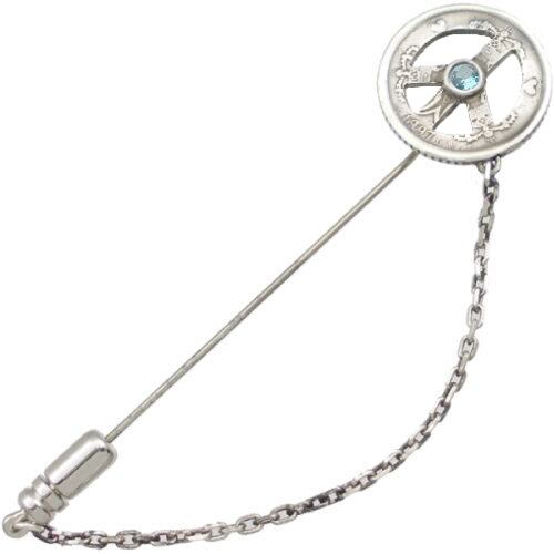 (11月)ブルートパーズ クローネ ピース コイン チェーン シルバー ラペルピン 誕生石*BK-1056